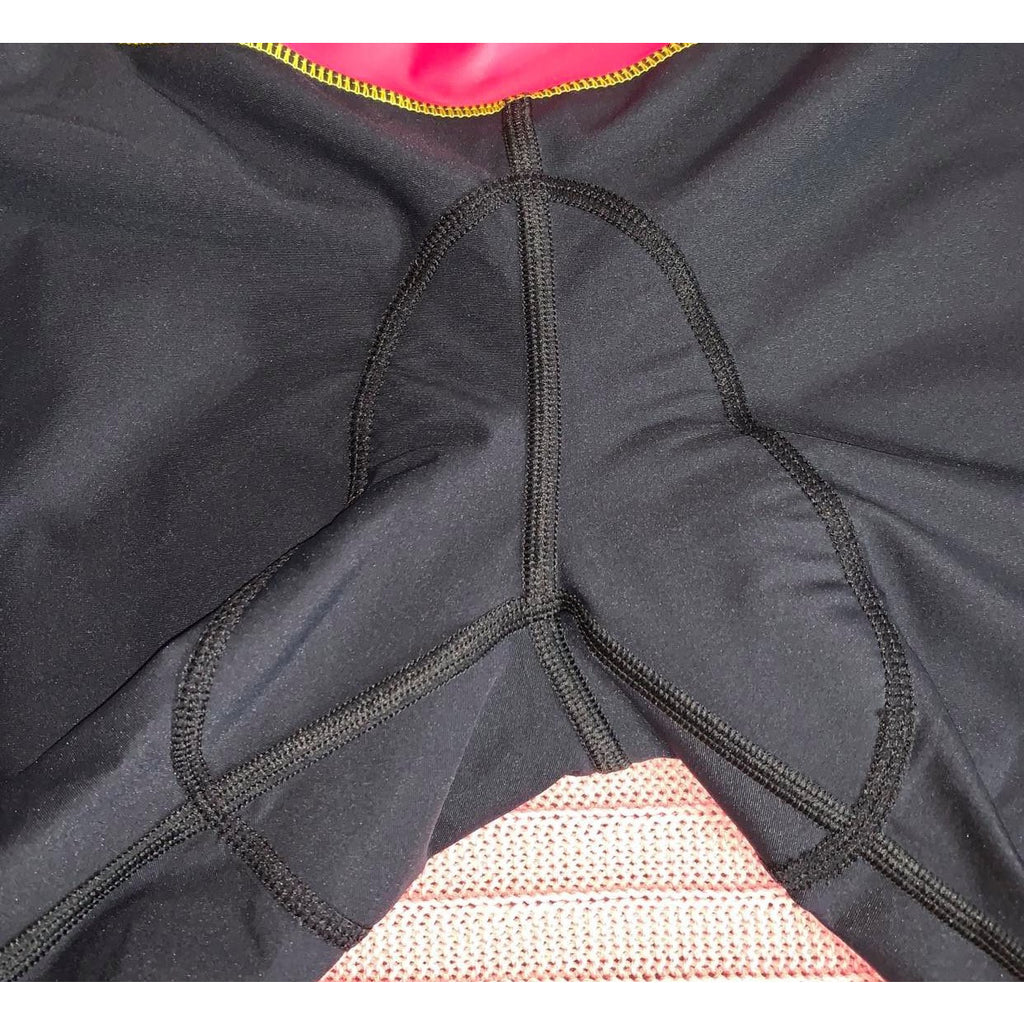 I wanted a pair of tri shorts that were both comfy and flattering at the same time. The Ciao Bella triathlon shorts in the Bella Blu Design marries super buttery Italian fabric with just the right cut to let you focus on training and racing rather than tugging and pulling. The fleece chamois is the piece de la resistance of these shorts and it comes down slightly longer in the thigh area to help with saddle and seam rubbing. The leg gripper is also a favorite of mine and keeps these babies from riding up and turning into bikini bottoms on the bike or run. I added two tiny pockets on the waistband for an emergency lip balm or whatever you want to be tucked away. Two hooks on the legs of the shorts are there to match up (if you choose to use them) with one of the triathlon tops and their hidden elastic loops. I've just added two deep pockets on either side of the shorts which can hold a few gels, some gummies or even a hamburger if you want.
