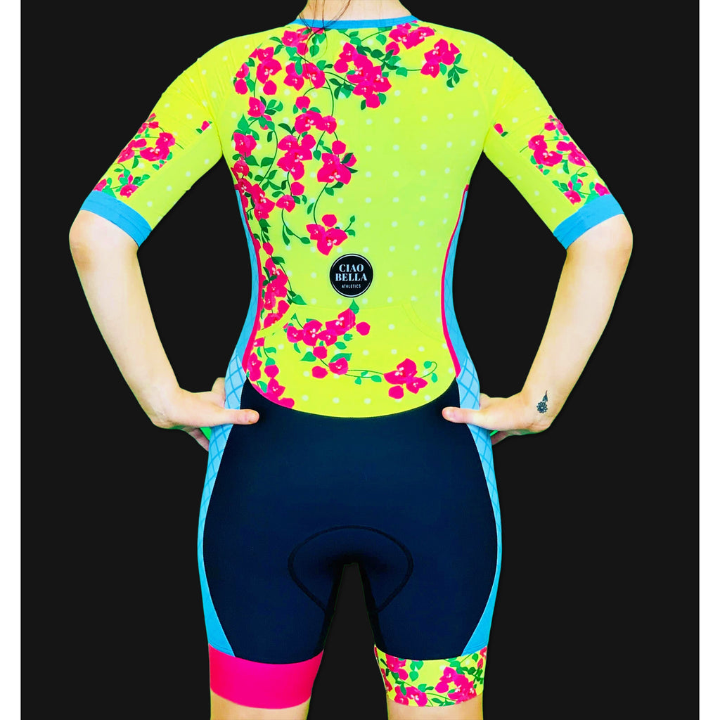 And, of course, the Ciao Bella fleece chamois that runs lower in the thighs for a comfy bike and run. Bravo, I say. Bravo.