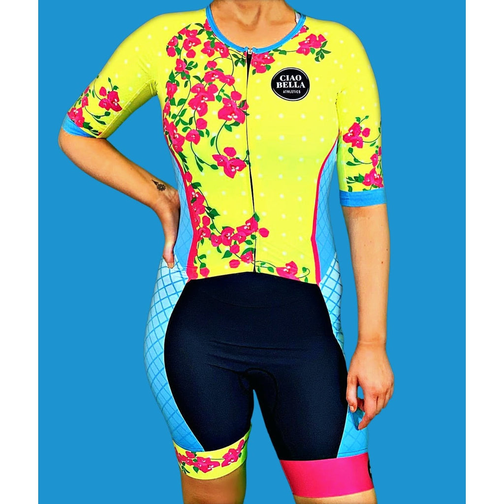 And, of course, the Ciao Bella fleece chamois that runs lower in the thighs for a comfy bike and run. Bravo, I say. Bravo.